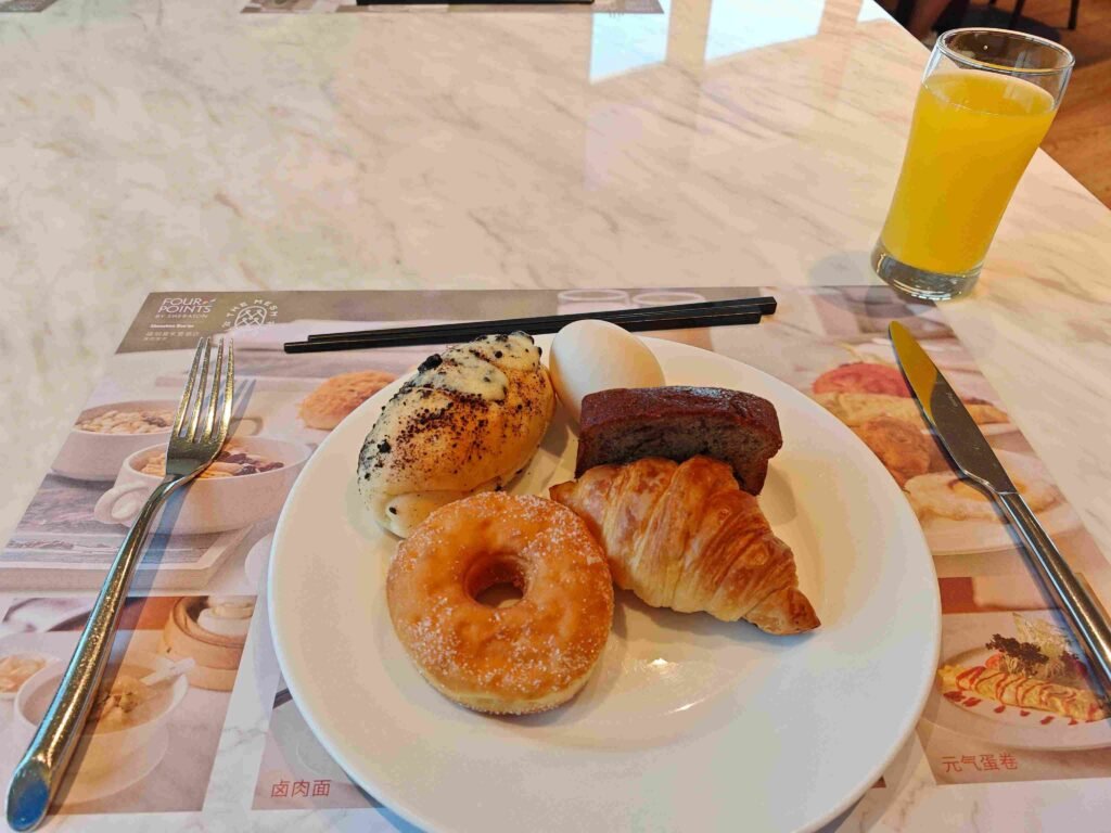 Travel/Four Points by Sheraton ShenzhenBao’an Leave a Comment / Uncategorized / By John a table on a welcome fruit , a tv a chair . a banana ,a cake ,polpular . 9 flor breakfast